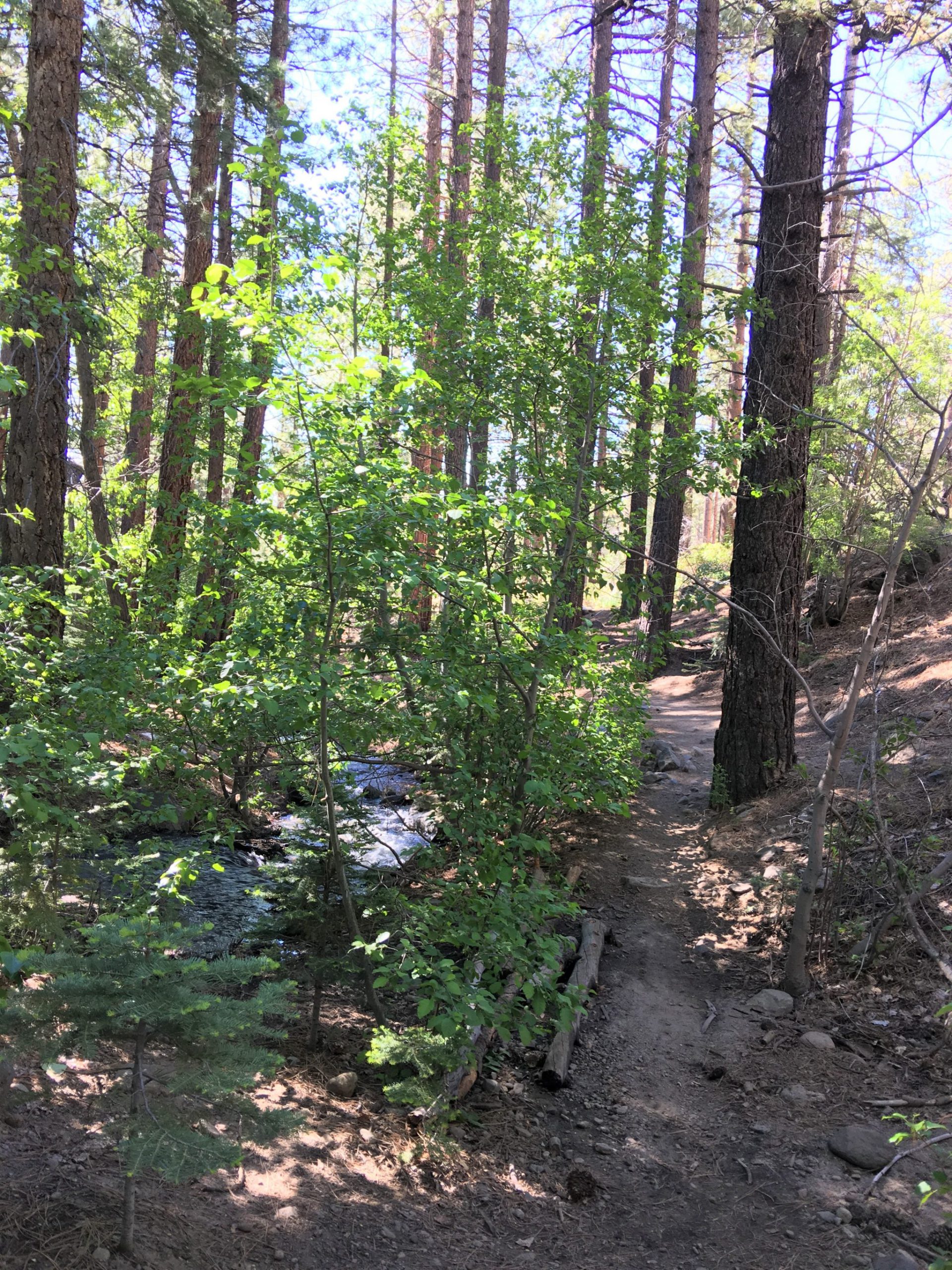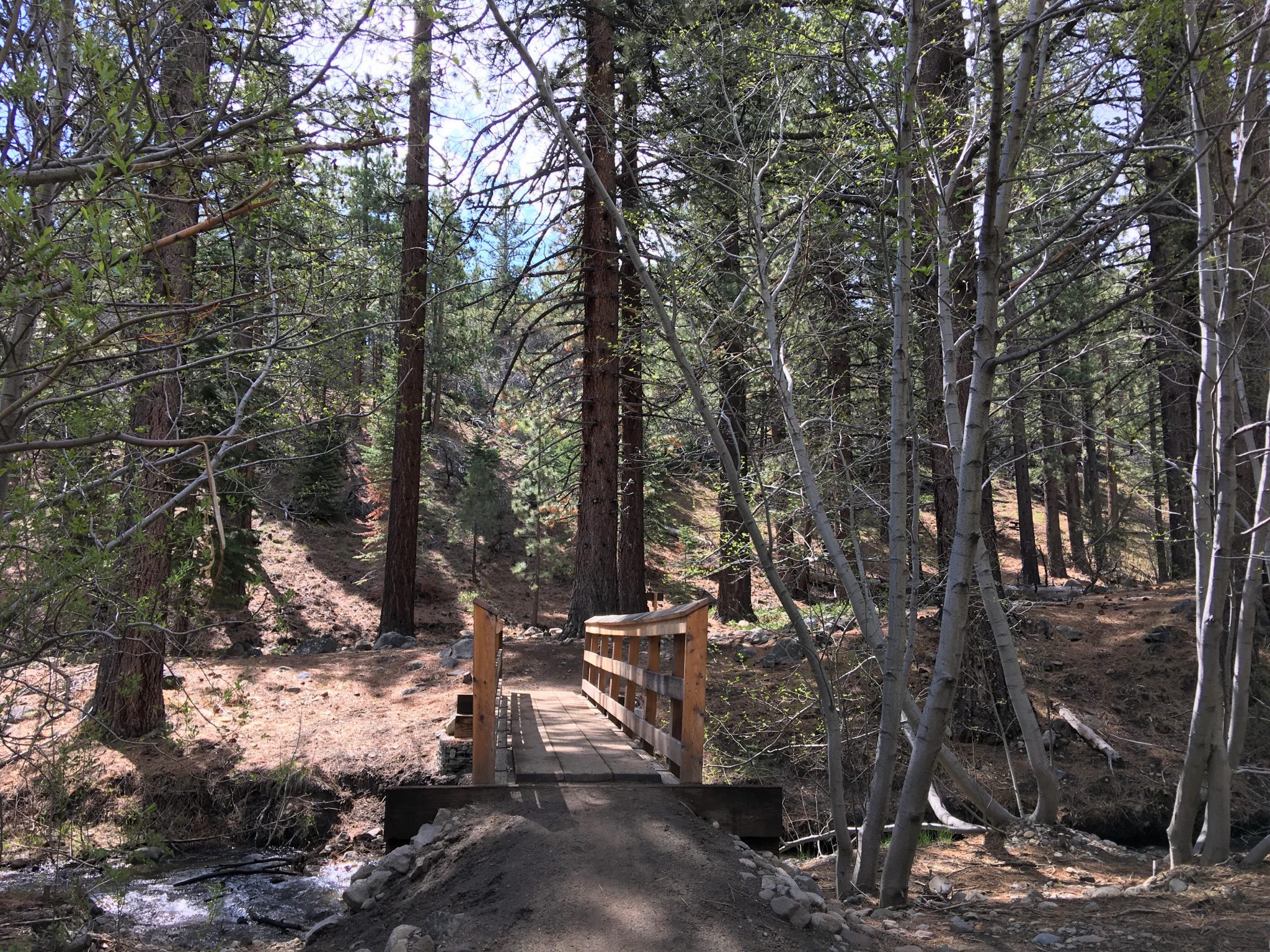 Mt. Rose のふもとにあるワショ―郡立公園のGalena Creek Regional Parkの北側にあるWhite Creek Trailは毎年5/2~10/31のあいだ限定オープンする初級者向きトレイル。全体的に勾配は緩く、コースはループ状ではなく、White Creek沿いを行って折り返し戻るコースです。
